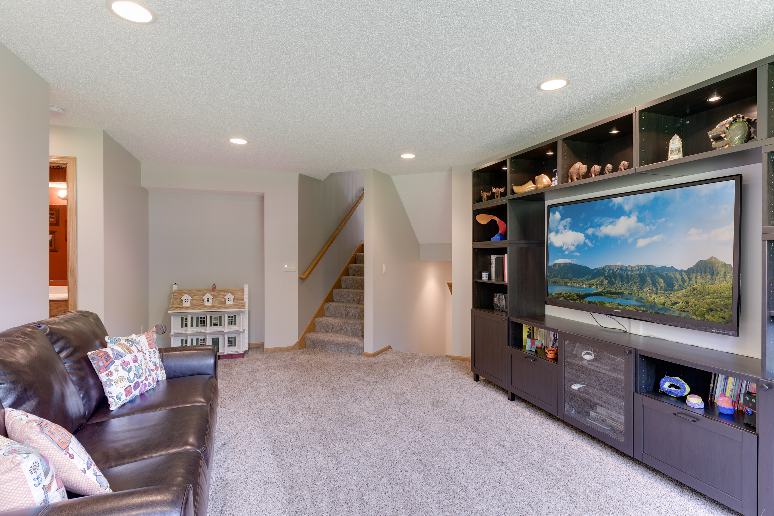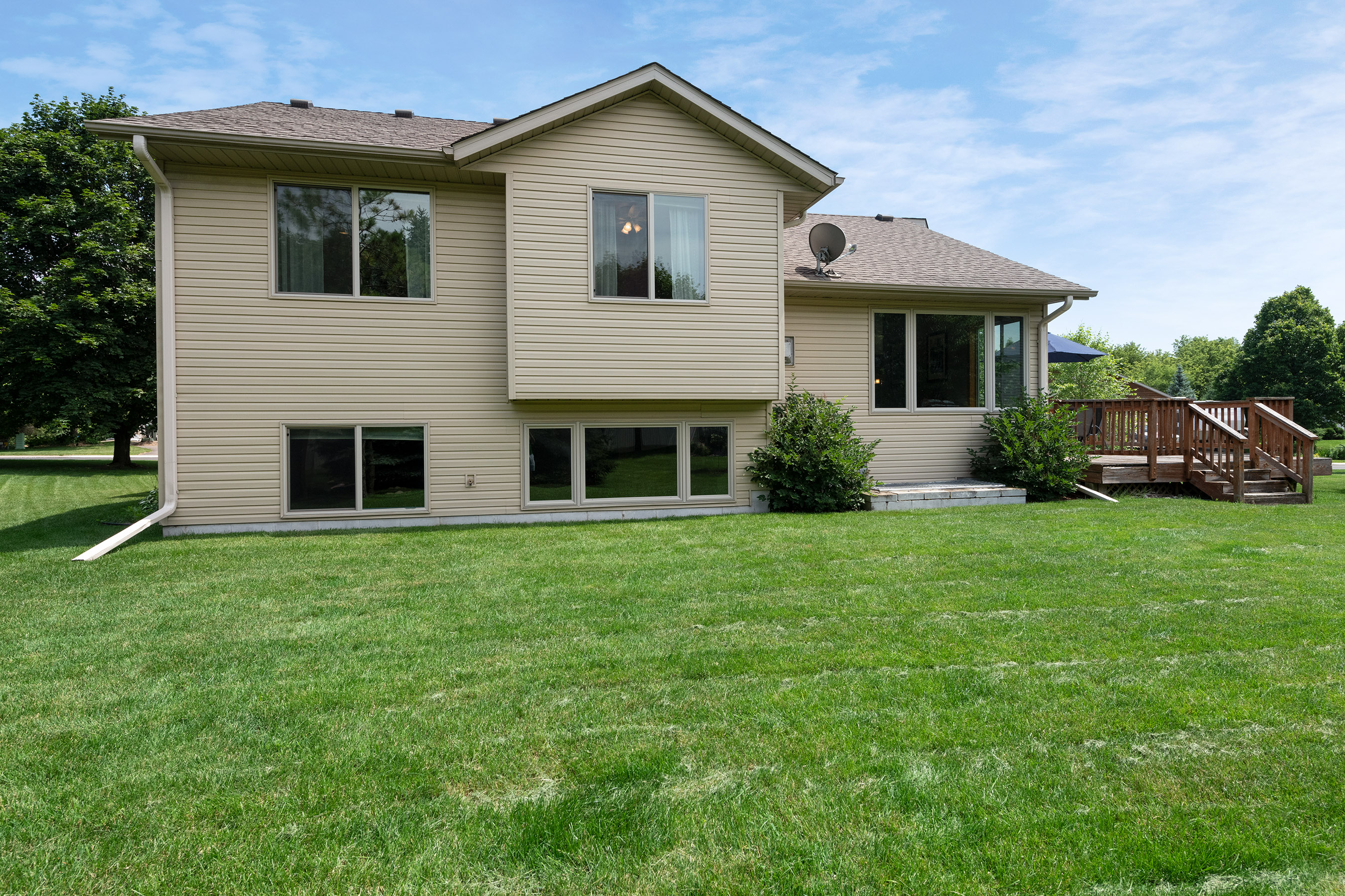 Spacious 4- level split located in South Lakeville on huge lot! Nice sprawling floor plan w/ large foyer. Living room has vaulted ceilings w/lots extra large windows for natural light. Kitchen features updated appliances with ample storage. Generous sized eat in kitchen dining area! Lower level features two bedrooms and nicely sized family room that is perfect for movie night! Sit on your deck overlooking your large yard! Home is across the street from the access to Lake Marion walking trails, parks, shopping and more! High demand Lakeville South Schools!