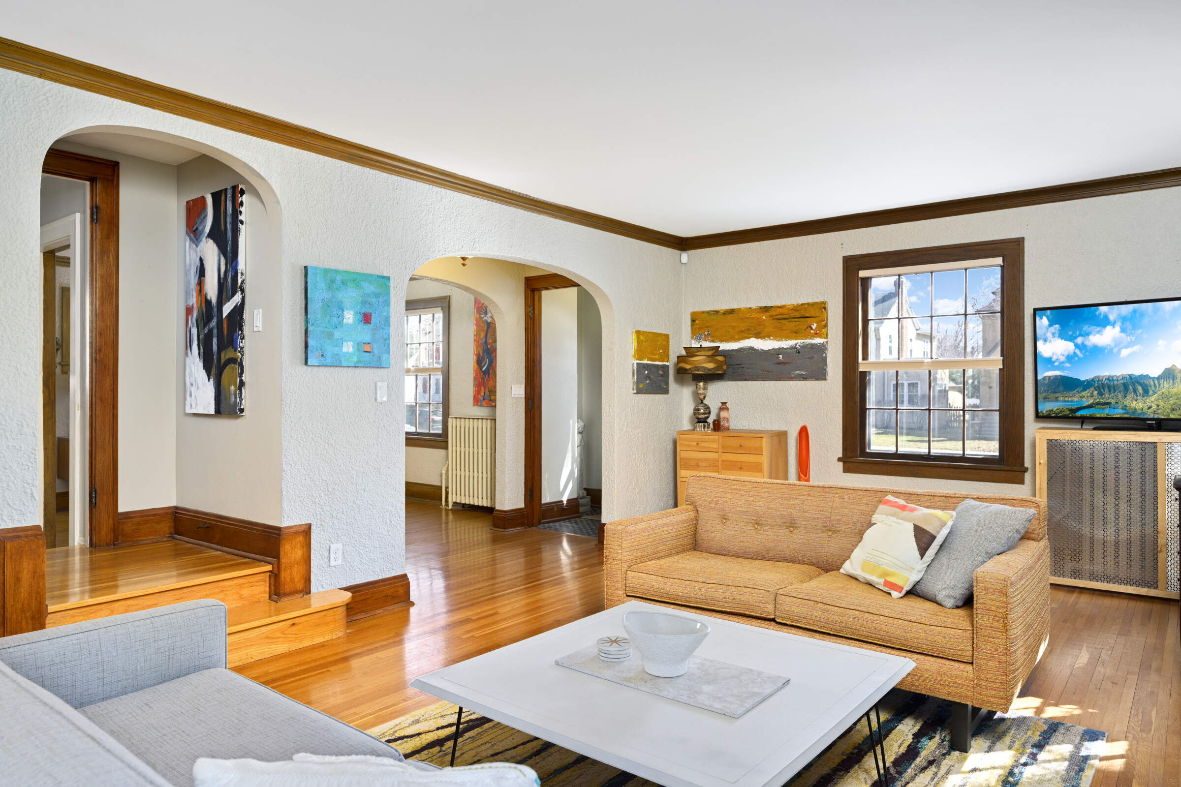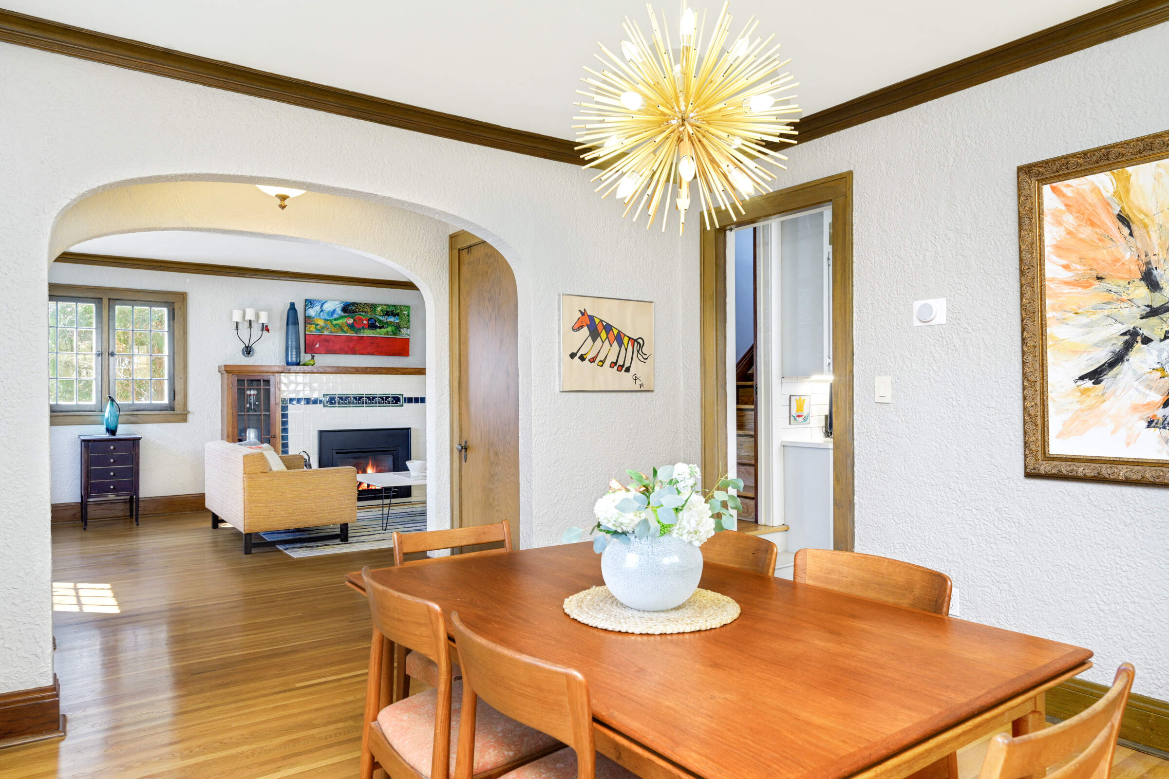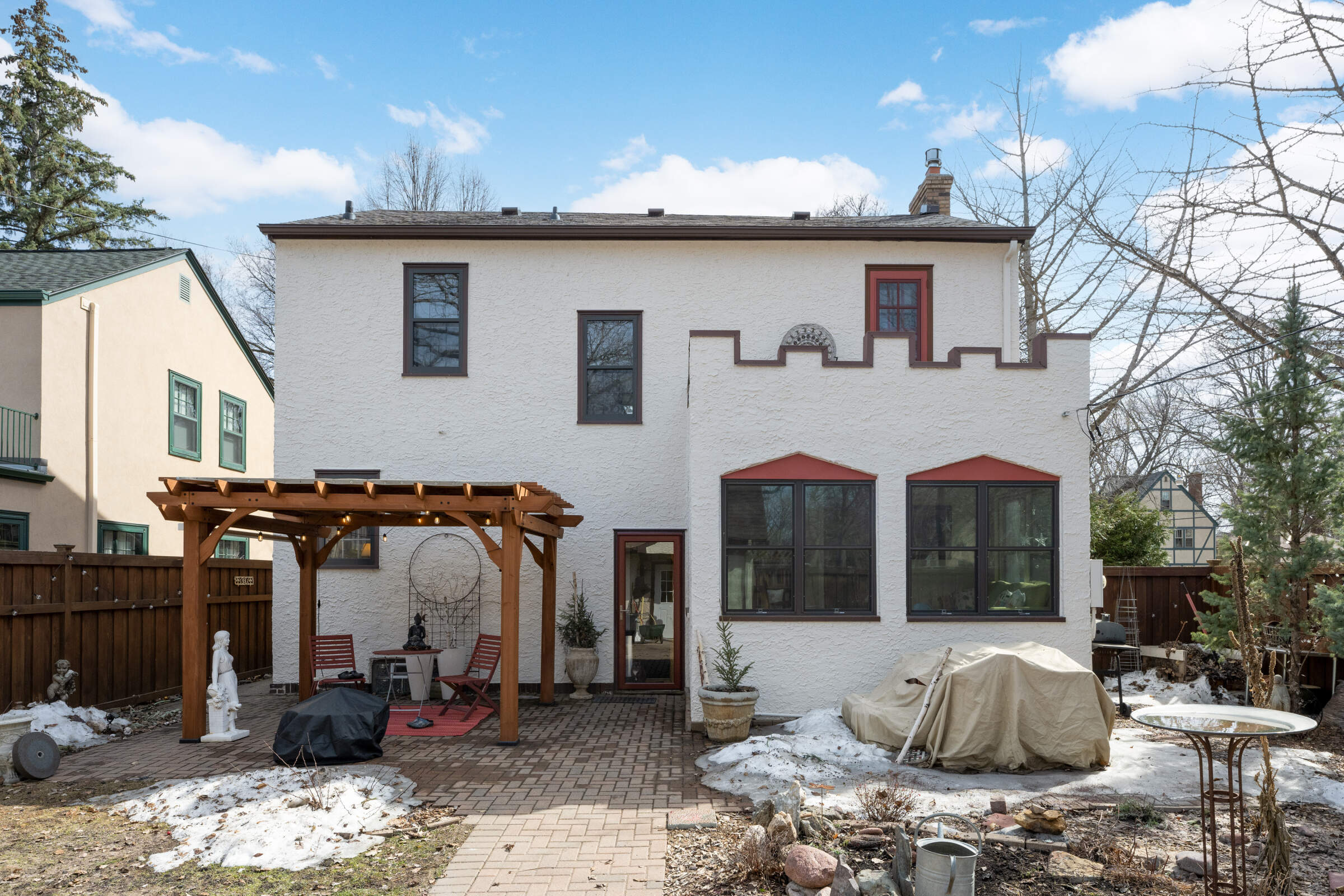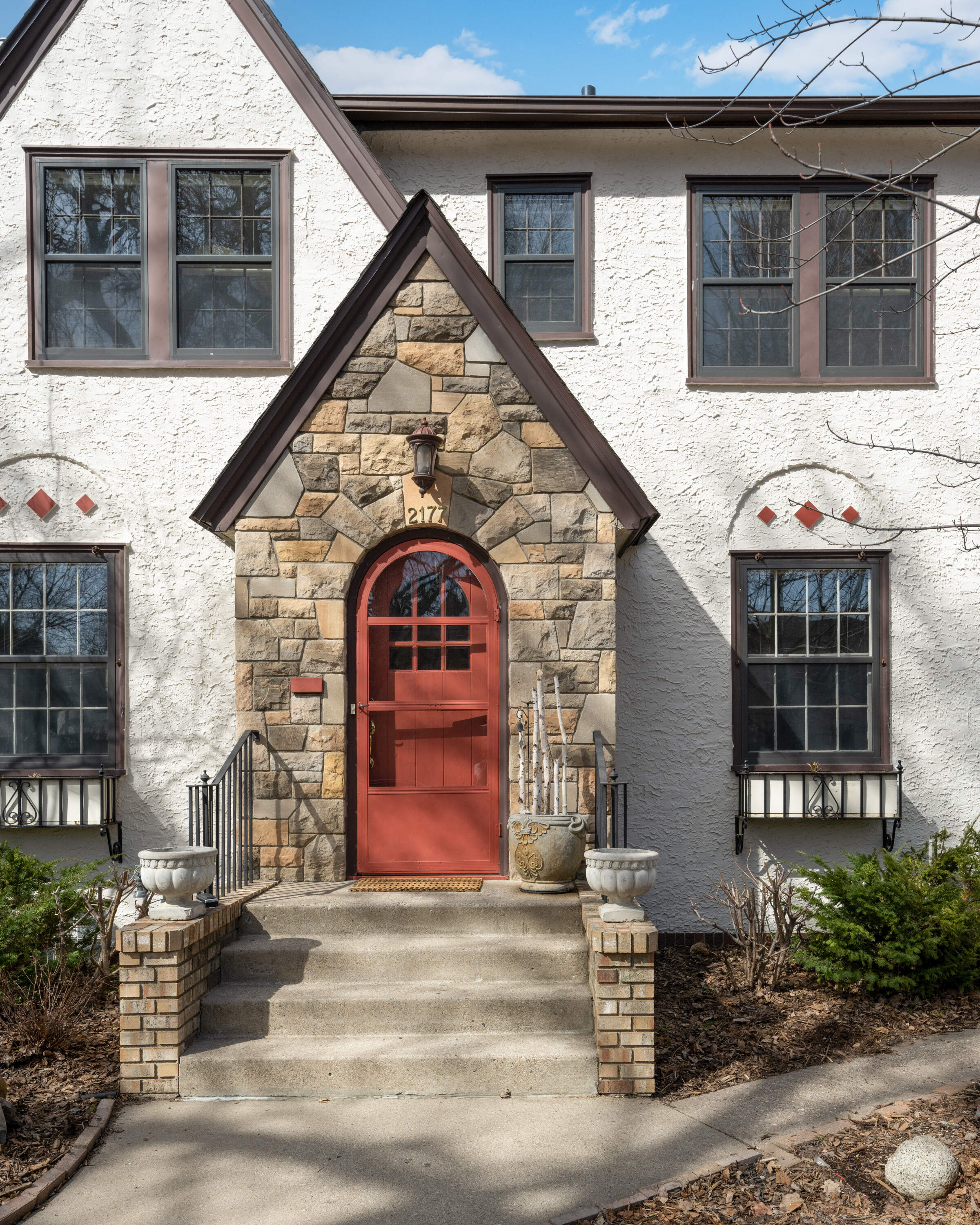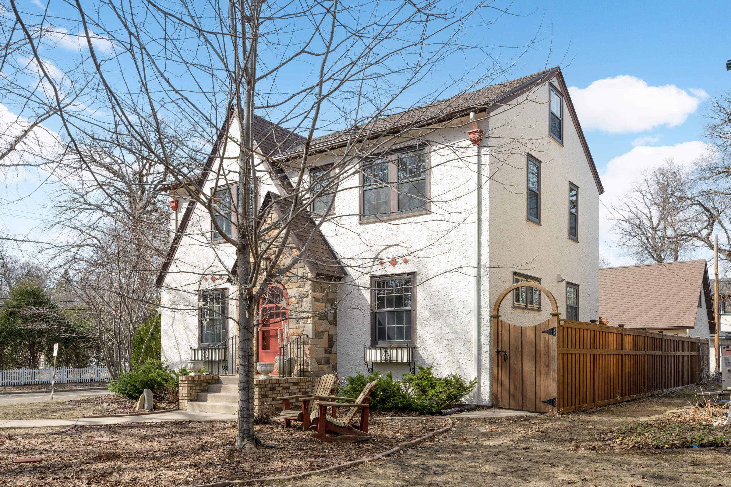 Located in treasured MacGroveland, this sunfilled 1927 Revival Tudor oozes curb appeal with its steeply pitched roof, detailed masonry tiles, stonework, and rounded front door. Inside the house boasts thoughtful updates and charming original details. Highlights include: beautifully crafted plaster walls, a gorgeous fireplace (gas), the original sconces & corner built-in china cabinets in the Dining Room, archways, warm wood floors, and French doors. An updated kitchen and sunroom (with new windows) round out the main level. The second floor has 4 bedrooms and a full bathroom (featuring the original ceramic tile in a gorgeous watery blue color palette ). The lower level offers a perfect TV room or guest space, complete with a full bathroom. This welcoming house is home to a Little Library and amazing gardens.