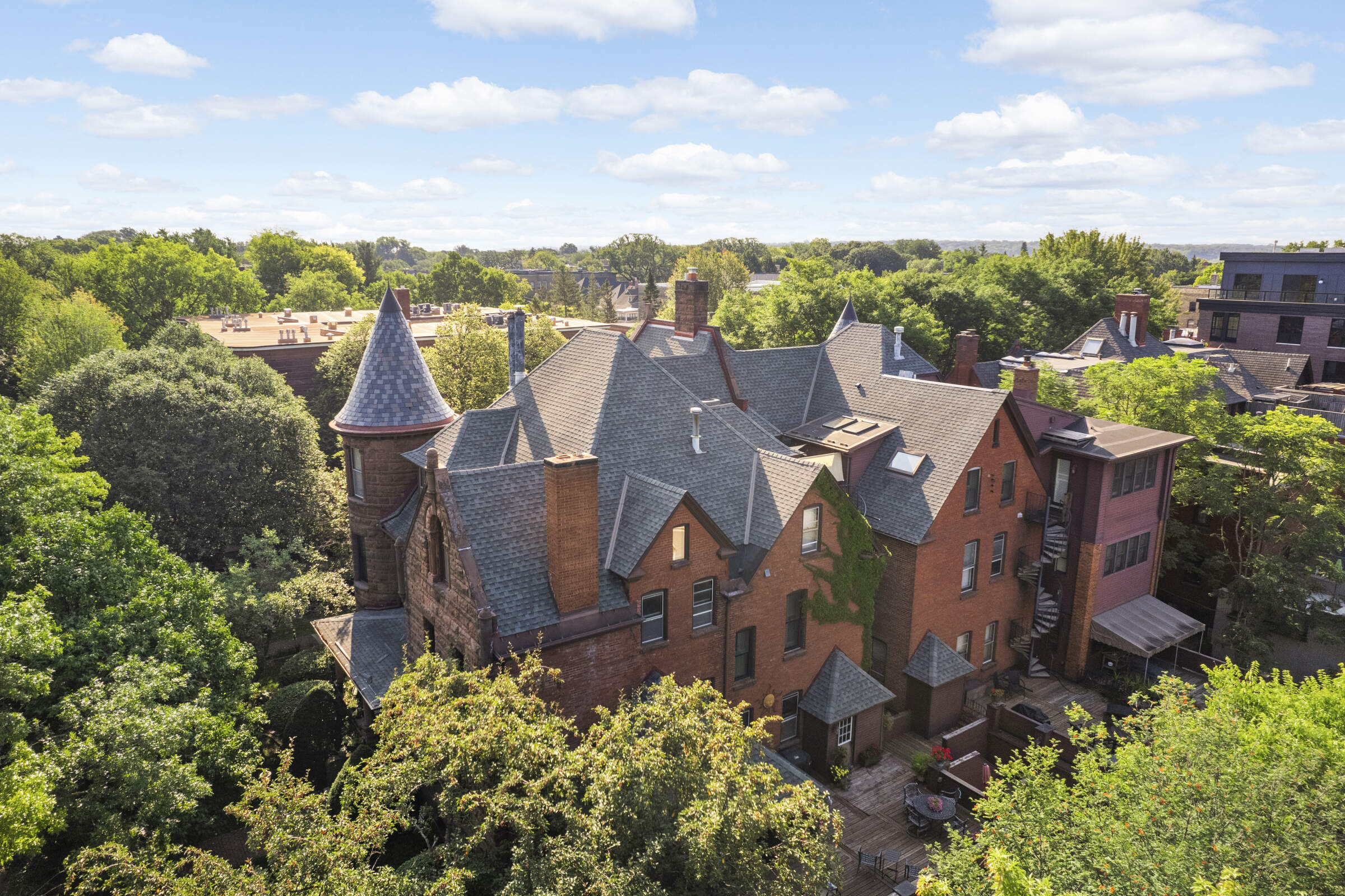 Welcome to this one of a kind, 2nd floor condo on Saint Paul’s historic Summit Avenue. Built in 1893 by renowned architect Hermann Kretz, this beautiful, Romanesque style home rests on the corner of Summit Ave and Saint Albans, providing unmatched walkability and a coveted spot in this enchanting and historic neighborhood. The layout of this 3BR/2BA condo is truly special, offering generous living and entertaining spaces that overlook Summit Avenue (including your own turret), while the sleeping quarters and bathrooms are separated by a large hall that adds a sense of grandeur to the space. The large, eat-in kitchen features its own fireplace and is wonderful, while its generous footprint allows for endless possibilities of a future dream kitchen. The common spaces include a large outdoor deck, yard and an attached garage, along with plenty of basement storage space. Book your showing of this special property today!