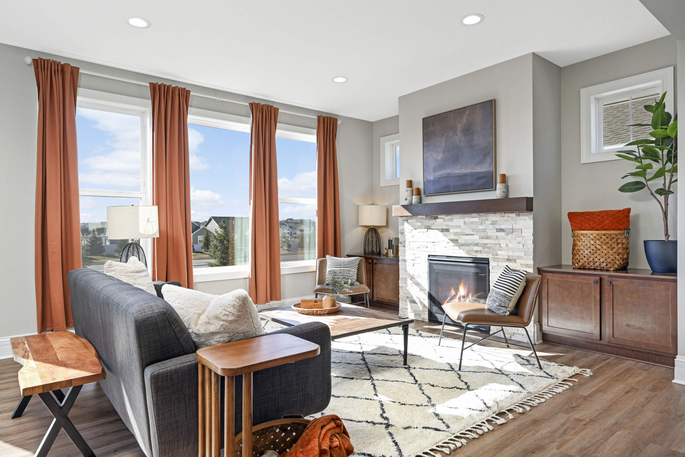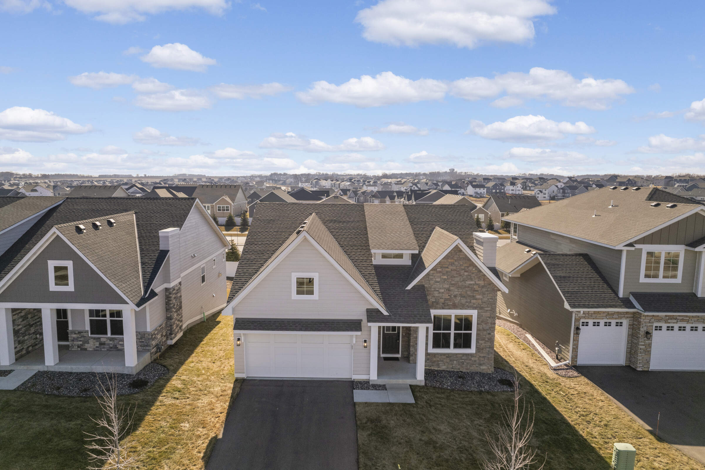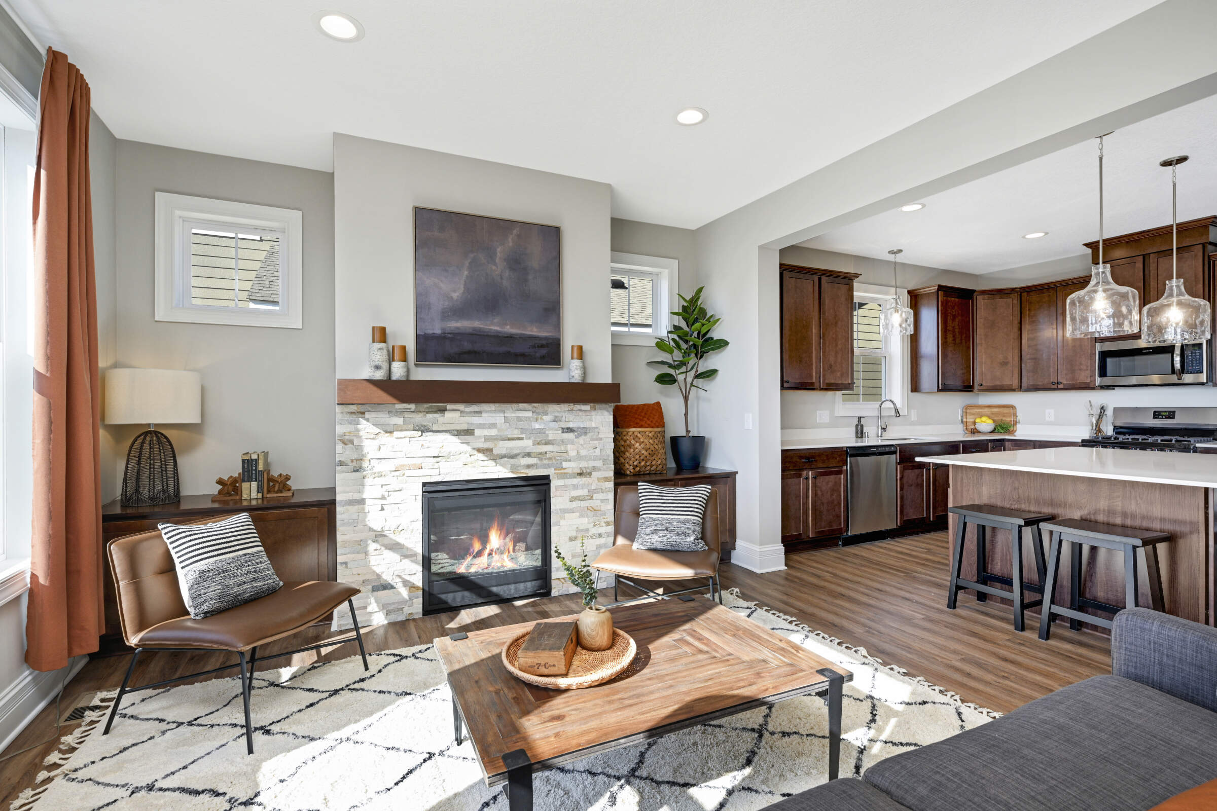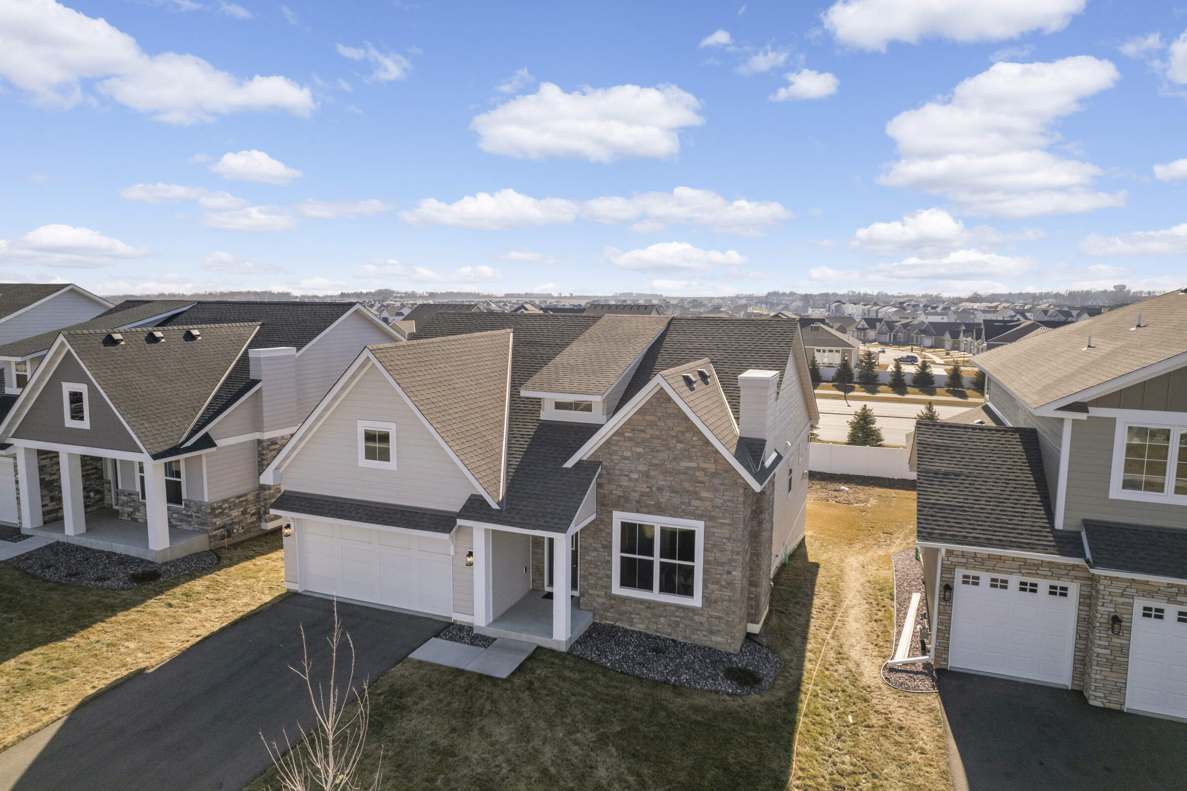 Welcome home to the 'Savannah' model located in the sought-after Summers Creek neighborhood. This home features convenient, single-level living complemented by a fully finished basement, offering a seamless blend of openness, brightness, and comfort. Featuring 3 bedrooms and 3 bathrooms, this home also boasts 2 generously sized living areas and a 2+ car garage equipped with additional space for extra storage. The Primary Suite is a haven of relaxation, while the heart of the home is adorned with an oversized center island, custom cabinetry, stainless steel appliances, quartz countertops, 9-foot ceilings, and a gas fireplace in the Great Room. Conveniently located near retail, restaurants, schools, parks and easy access to both Cedar Avenue and Interstate 35.