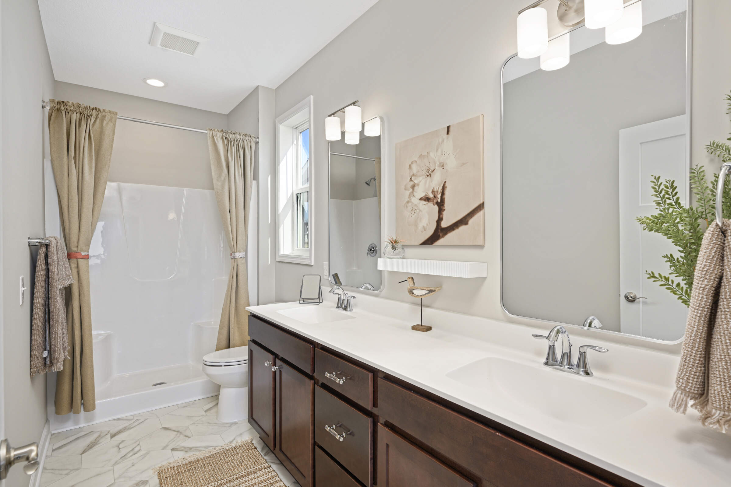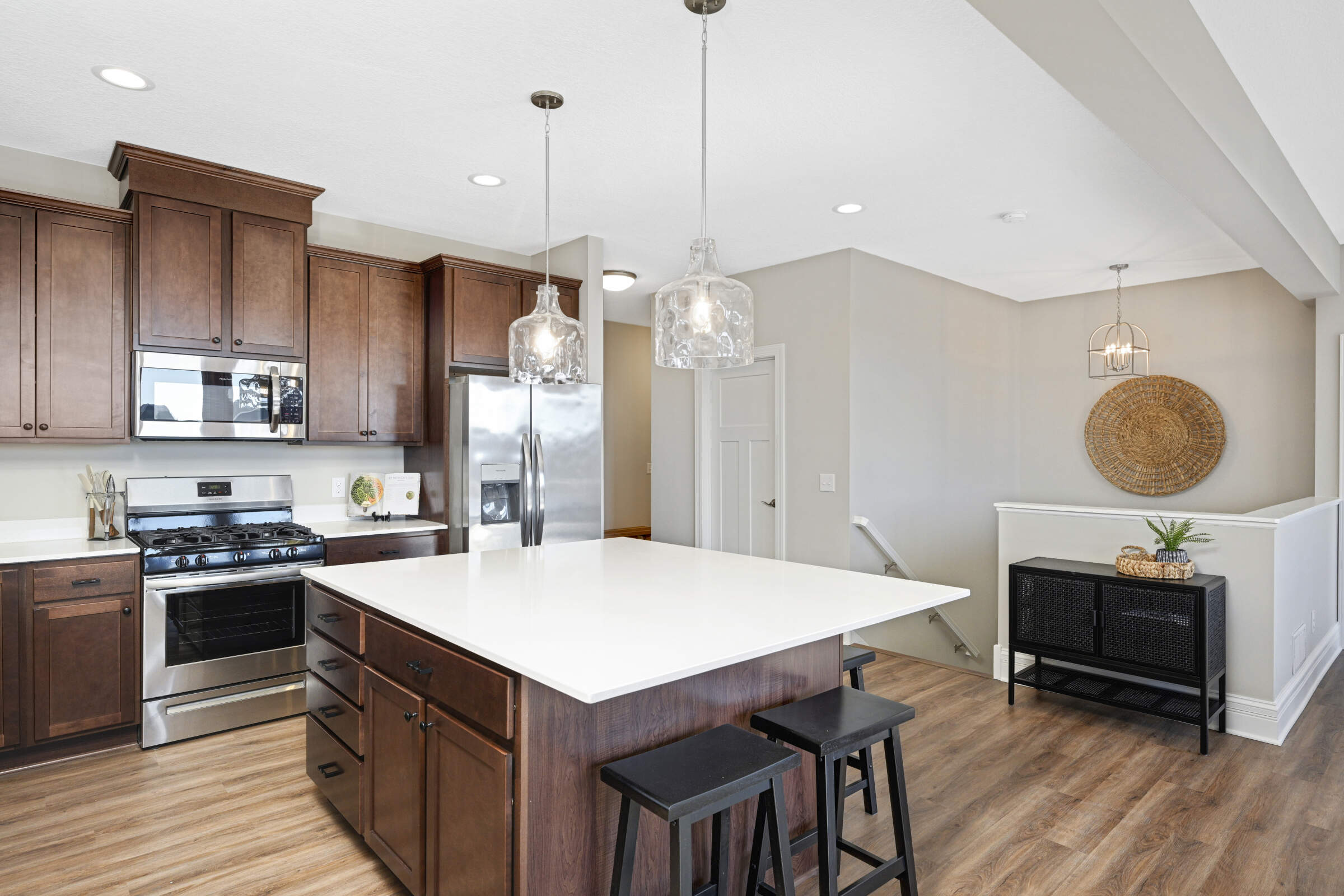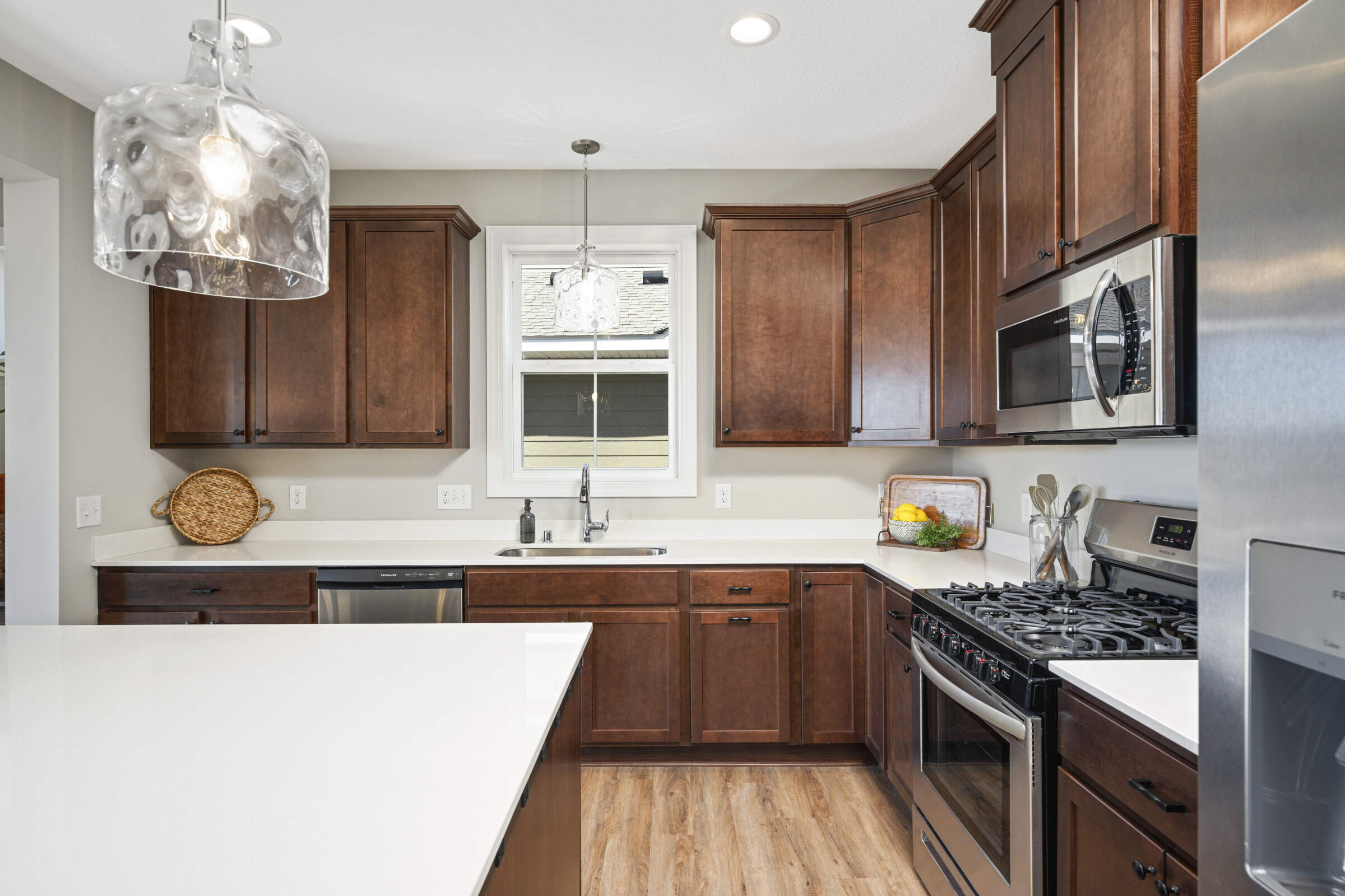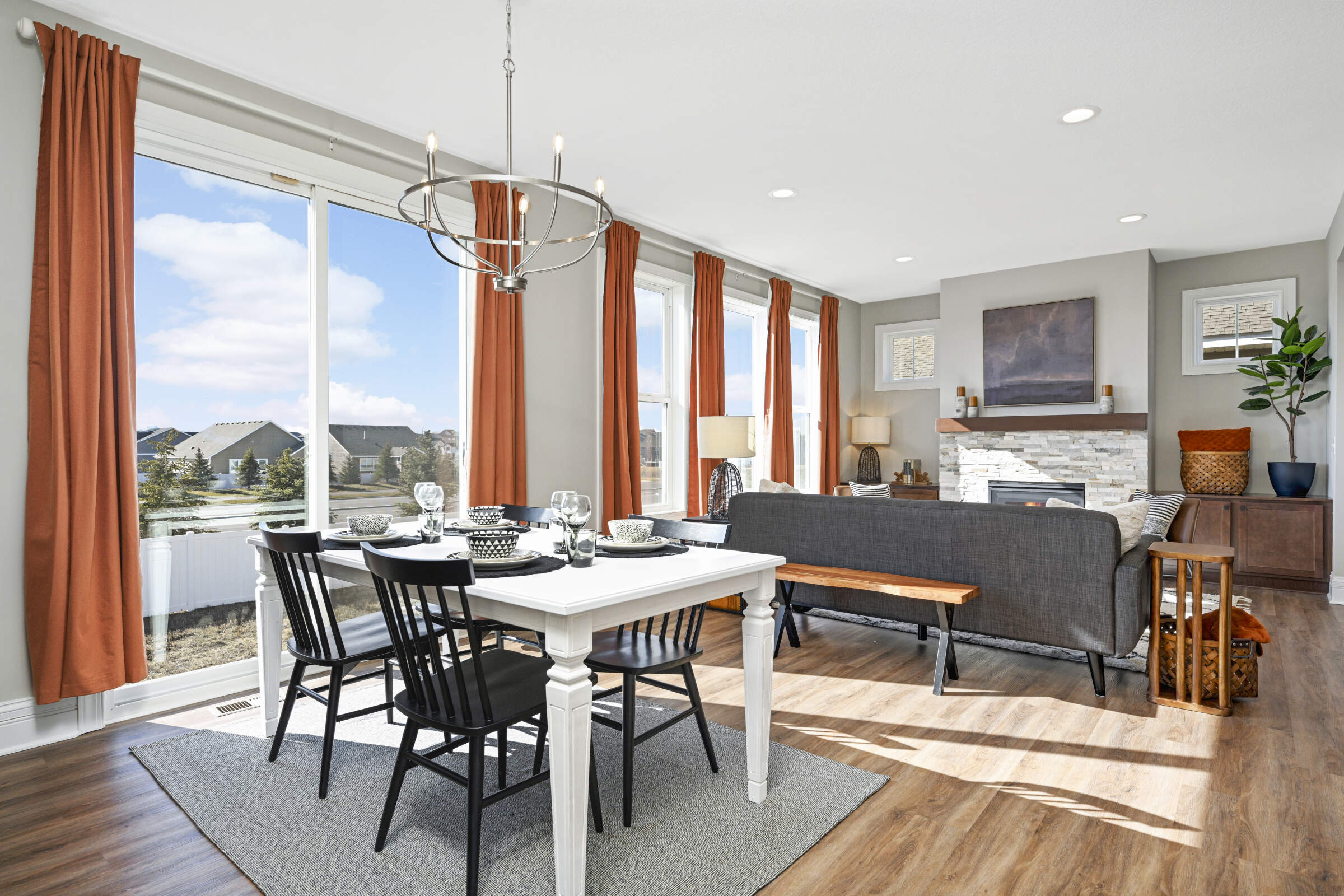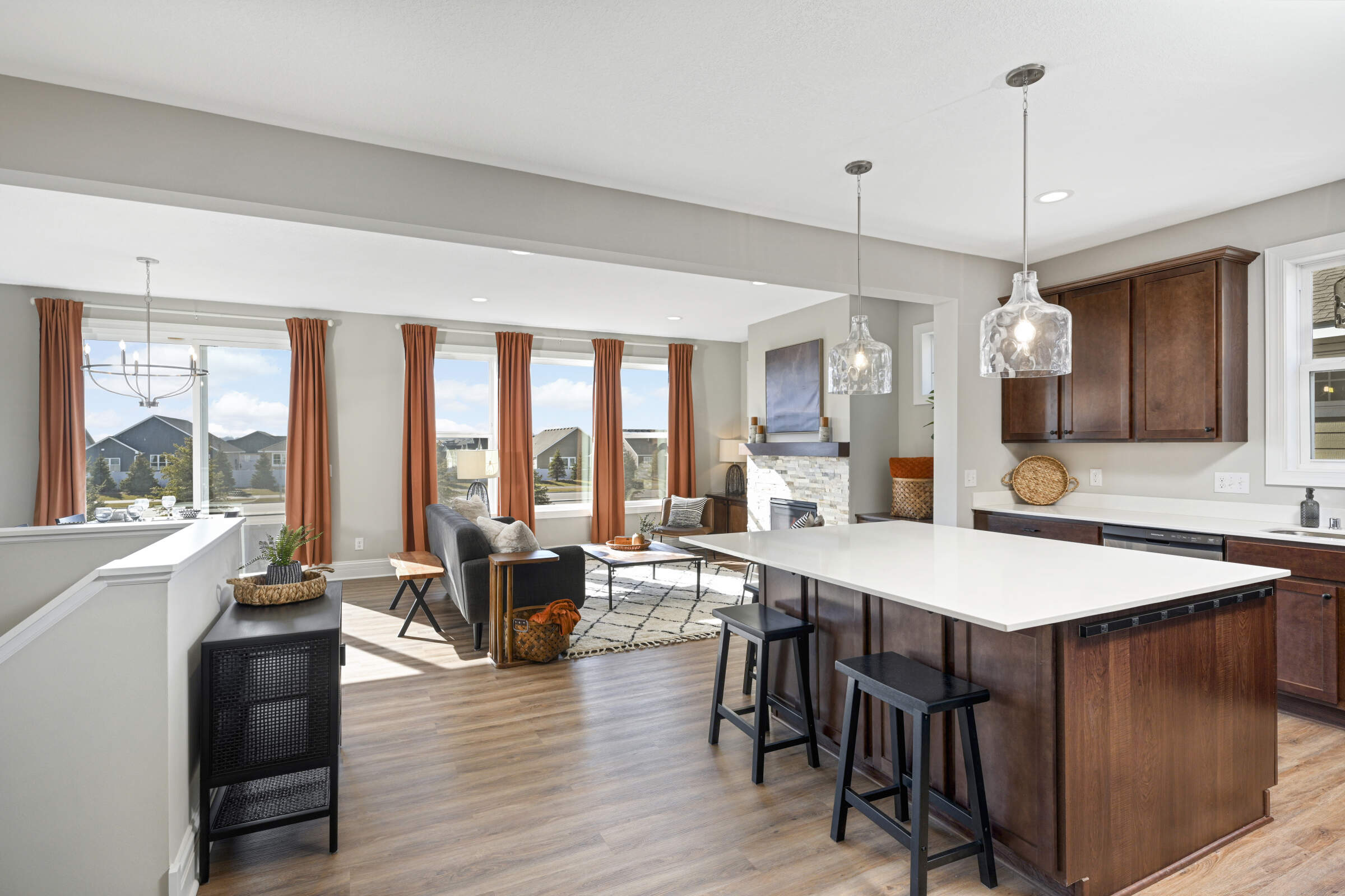 Welcome home to the 'Savannah' model located in the sought-after Summers Creek neighborhood. This home features convenient, single-level living complemented by a fully finished basement, offering a seamless blend of openness, brightness, and comfort. Featuring 3 bedrooms and 3 bathrooms, this home also boasts 2 generously sized living areas and a 2+ car garage equipped with additional space for extra storage. The Primary Suite is a haven of relaxation, while the heart of the home is adorned with an oversized center island, custom cabinetry, stainless steel appliances, quartz countertops, 9-foot ceilings, and a gas fireplace in the Great Room. Conveniently located near retail, restaurants, schools, parks and easy access to both Cedar Avenue and Interstate 35.
