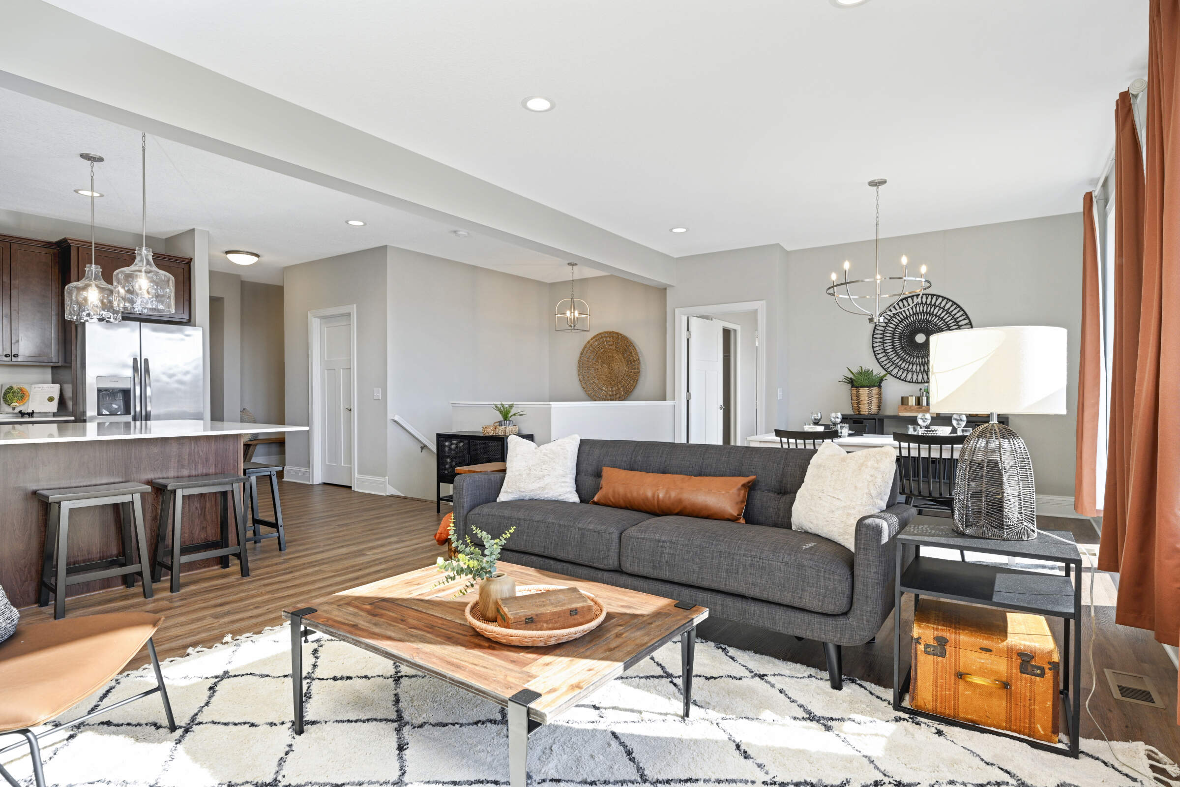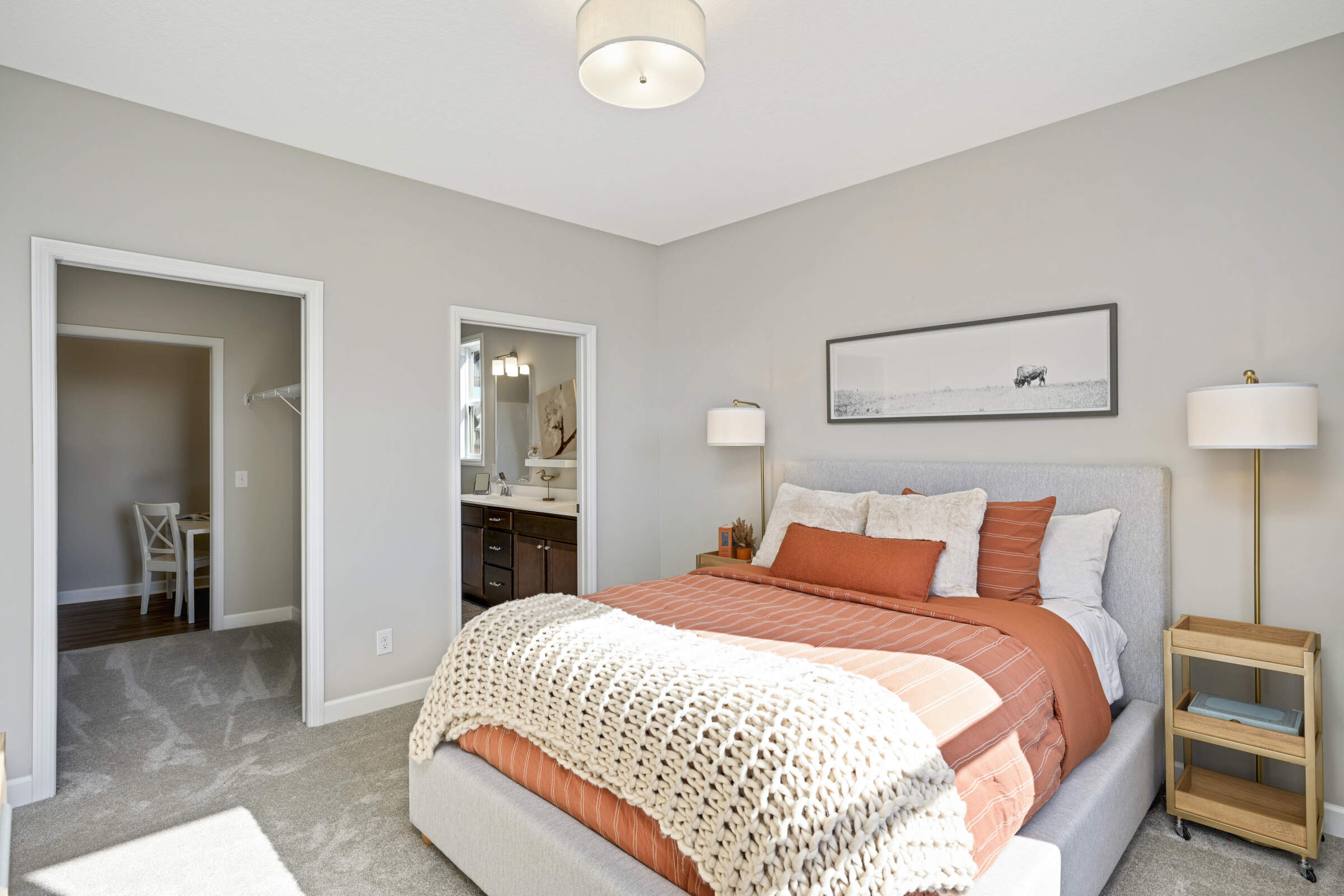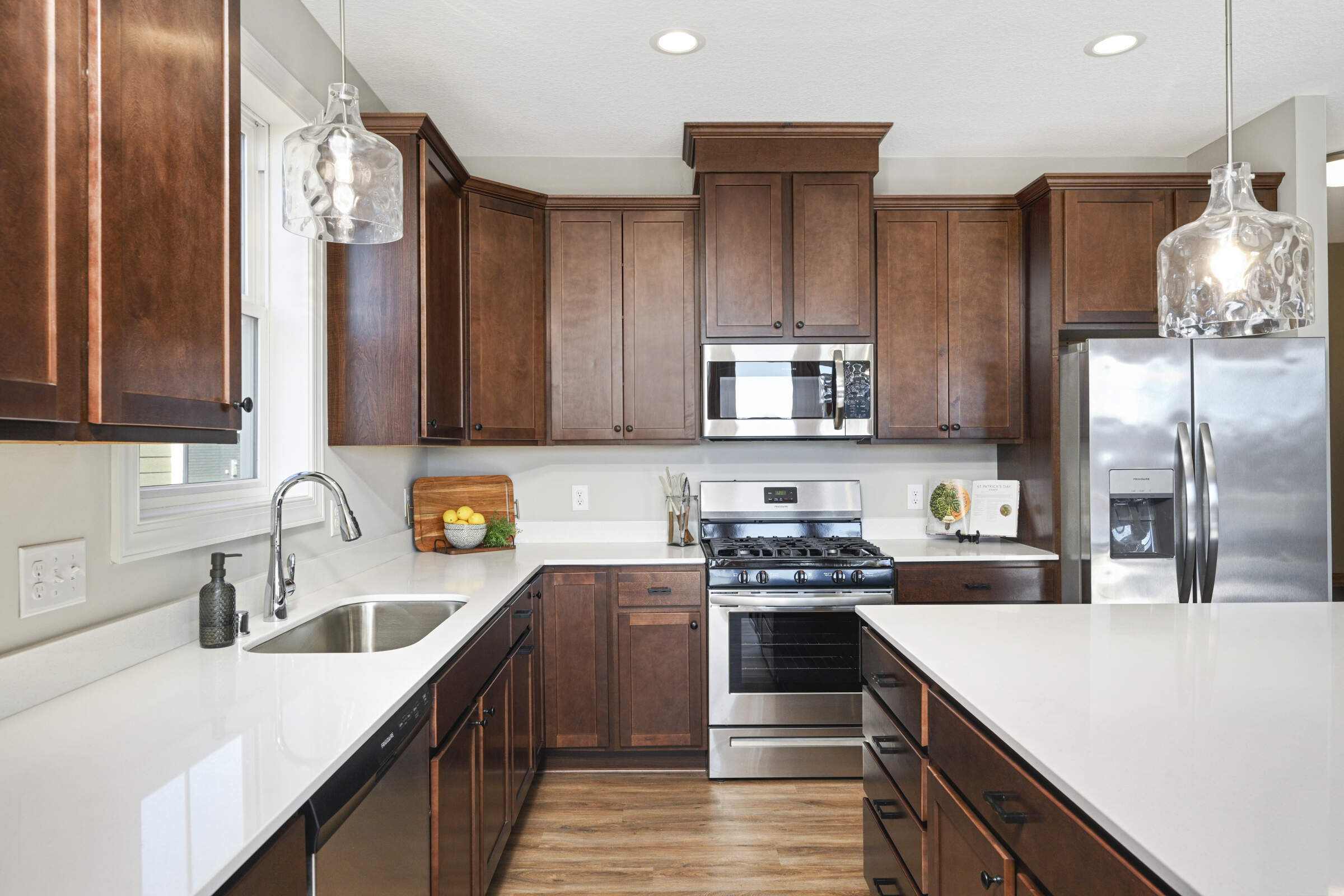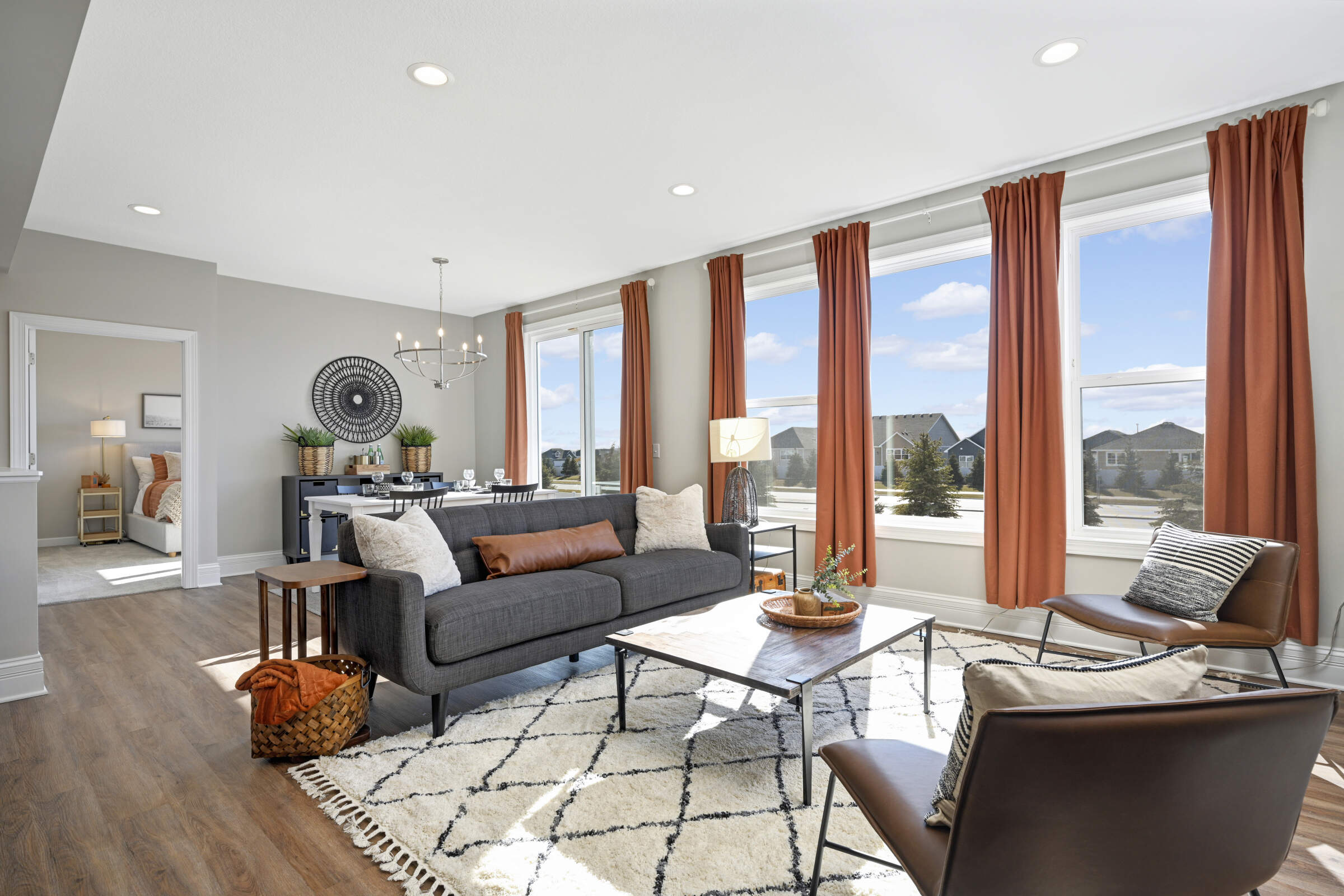 Welcome home to the 'Savannah' model located in the sought-after Summers Creek neighborhood. This home features convenient, single-level living complemented by a fully finished basement, offering a seamless blend of openness, brightness, and comfort. Featuring 3 bedrooms and 3 bathrooms, this home also boasts 2 generously sized living areas and a 2+ car garage equipped with additional space for extra storage. The Primary Suite is a haven of relaxation, while the heart of the home is adorned with an oversized center island, custom cabinetry, stainless steel appliances, quartz countertops, 9-foot ceilings, and a gas fireplace in the Great Room. Conveniently located near retail, restaurants, schools, parks and easy access to both Cedar Avenue and Interstate 35.