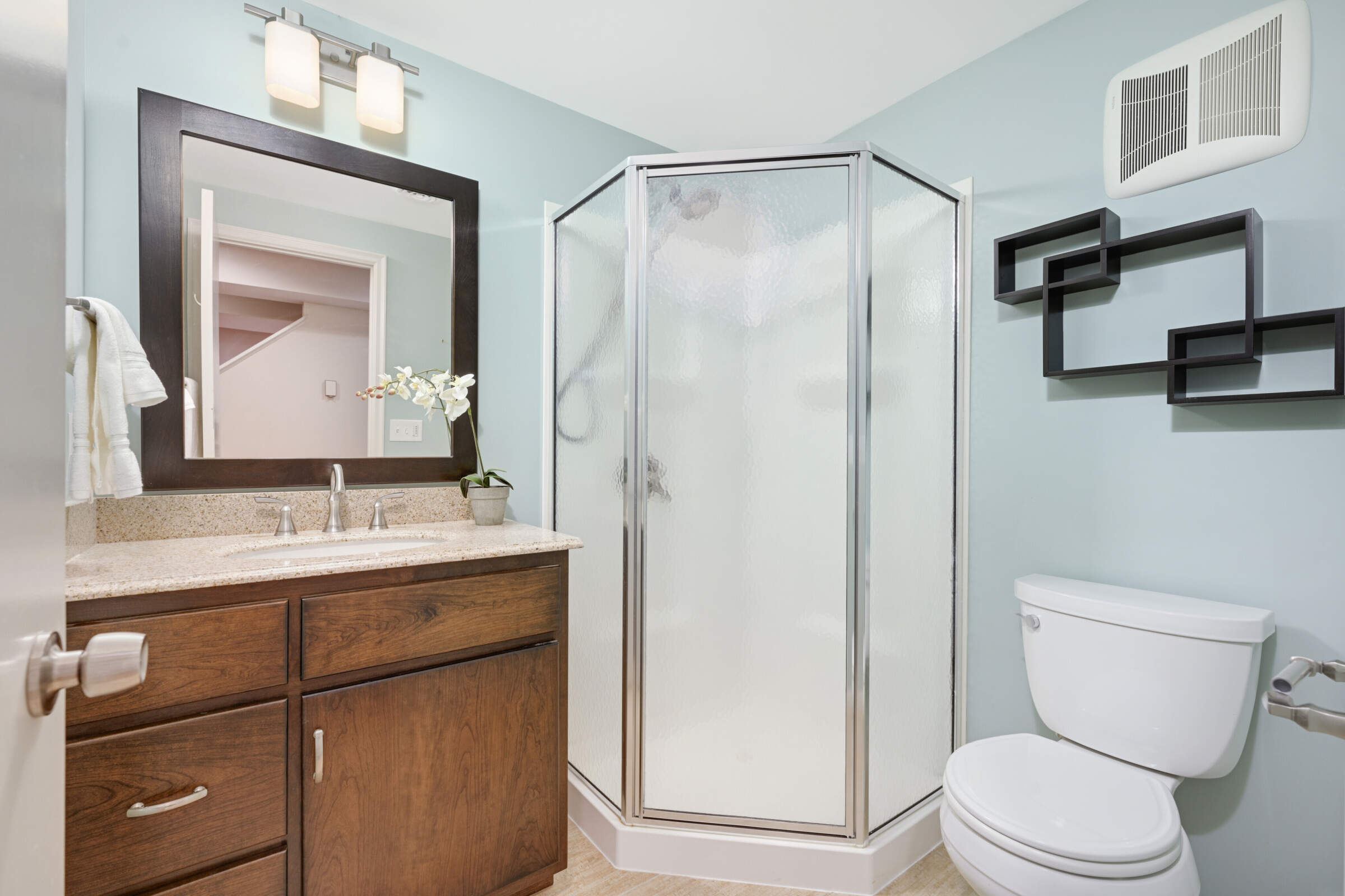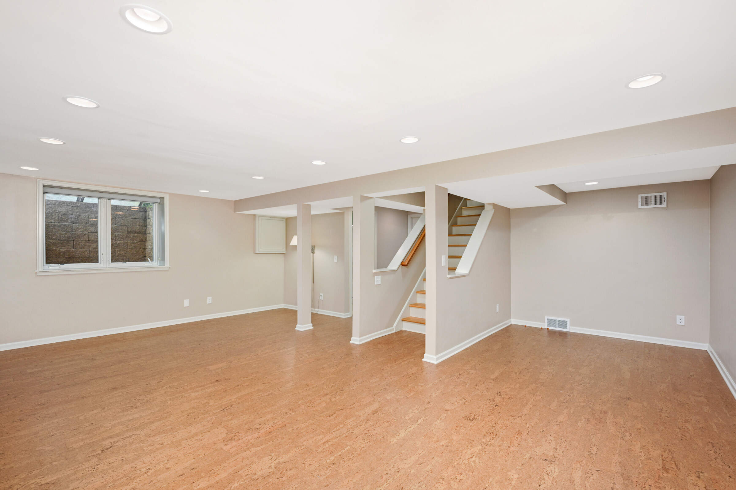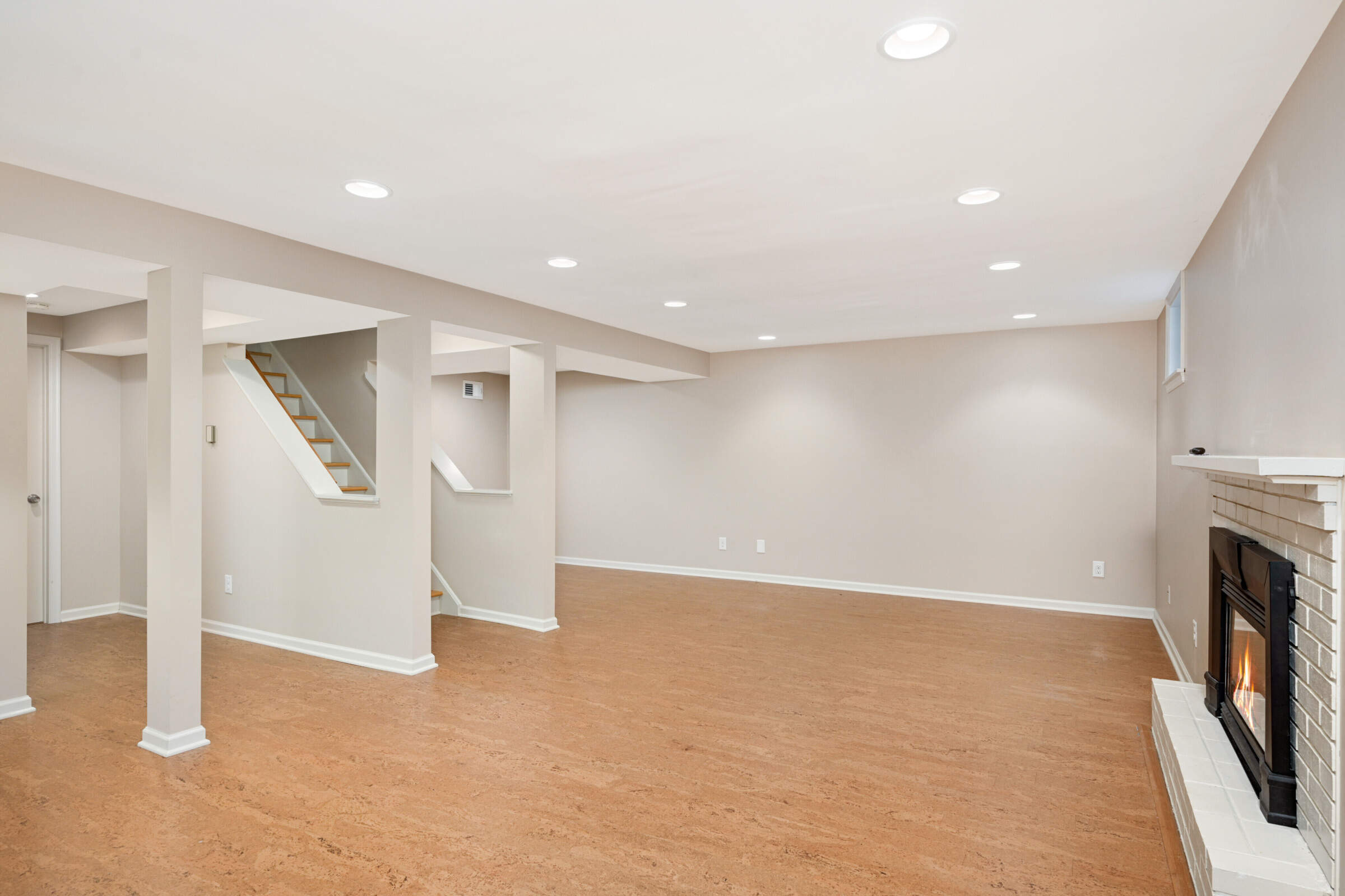 • The lower level offers a second family room with a 3rd gas fireplace, a large egress window, cork floors, an exercise area and a remodeled 3/4 bath plus a separate utility room offering tons of storage and spacious laundry area.