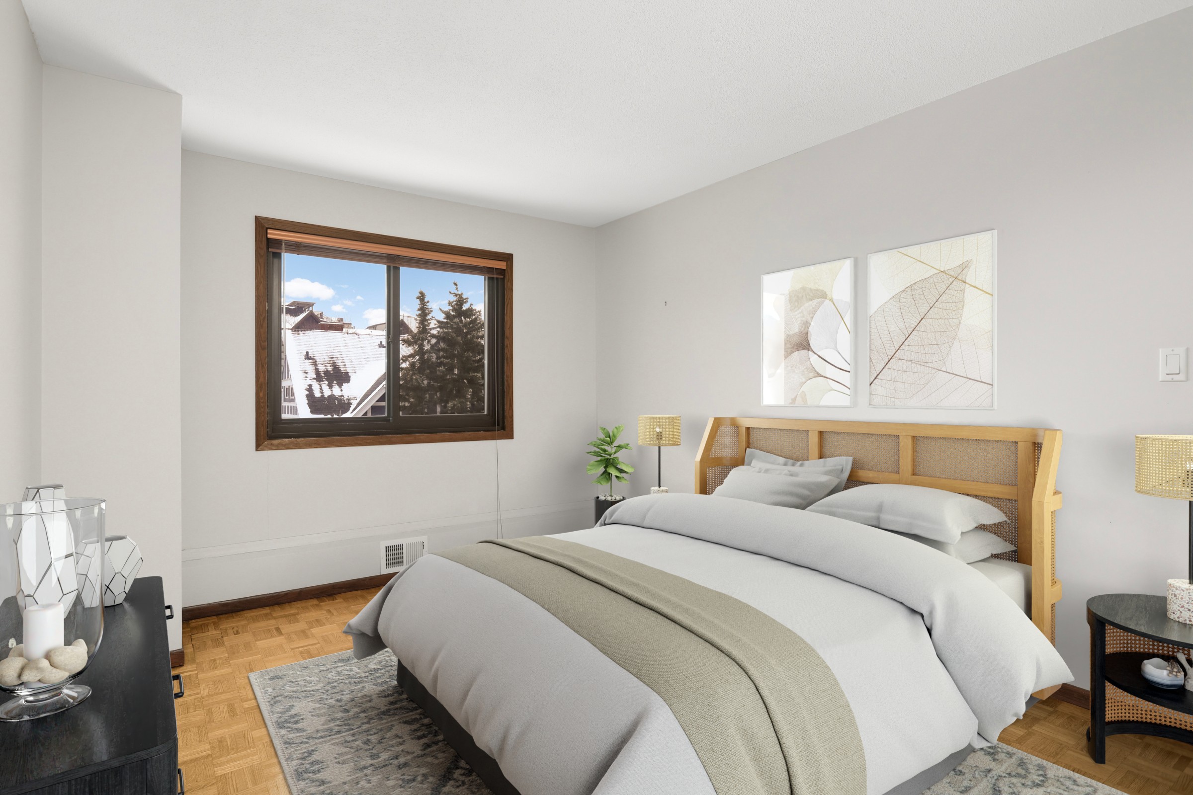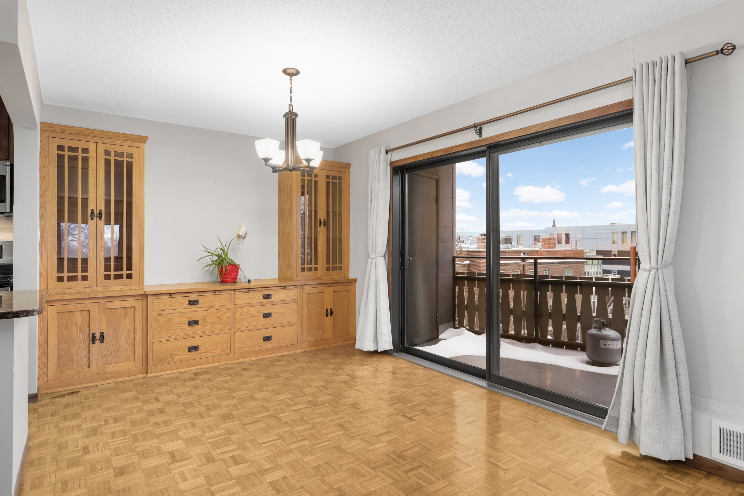 Beautiful views from the treetops with urban views . Dinning room with built-in buffet, updated kit with granite countertops, beautifully updated bath w/large walk-in shower. HW parq flrs in great condition. Rooftop pool! 2 parking spots !!! . Summit House is a 2 building, 297 unit, 23 story condominium association located in the Loring Park Neighborhood. Dedicated associates are committed to maki...